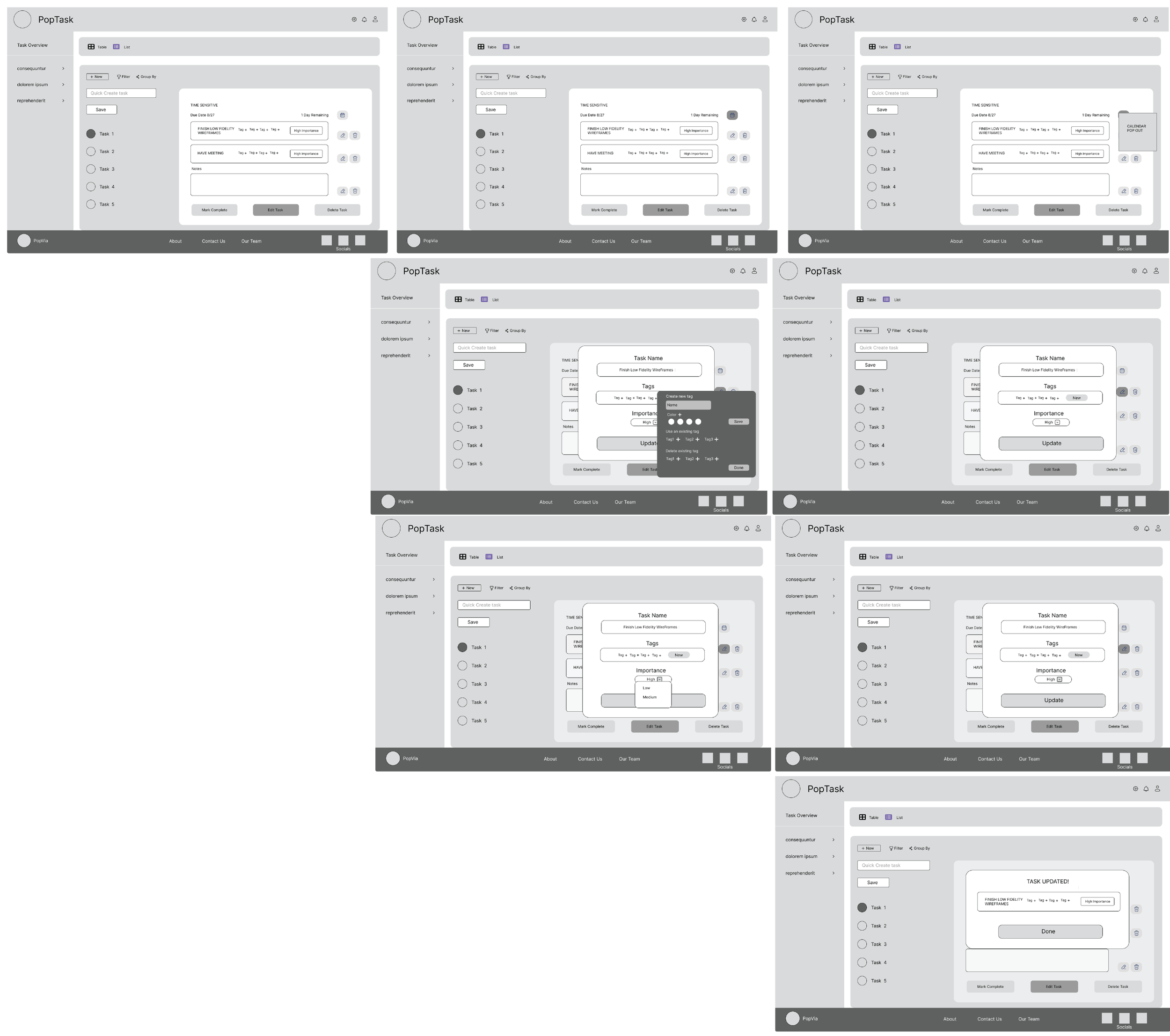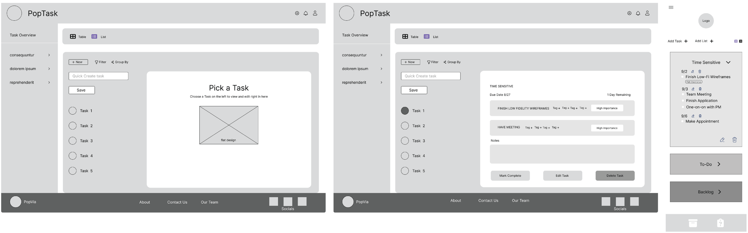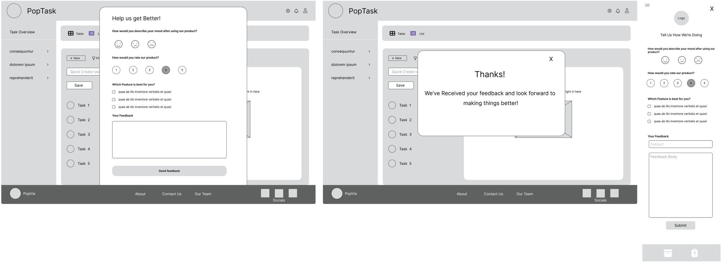 Feedback Form- Desktop and MobileDesktop and Mobile List ViewTask Edit Wireframes - Desktop