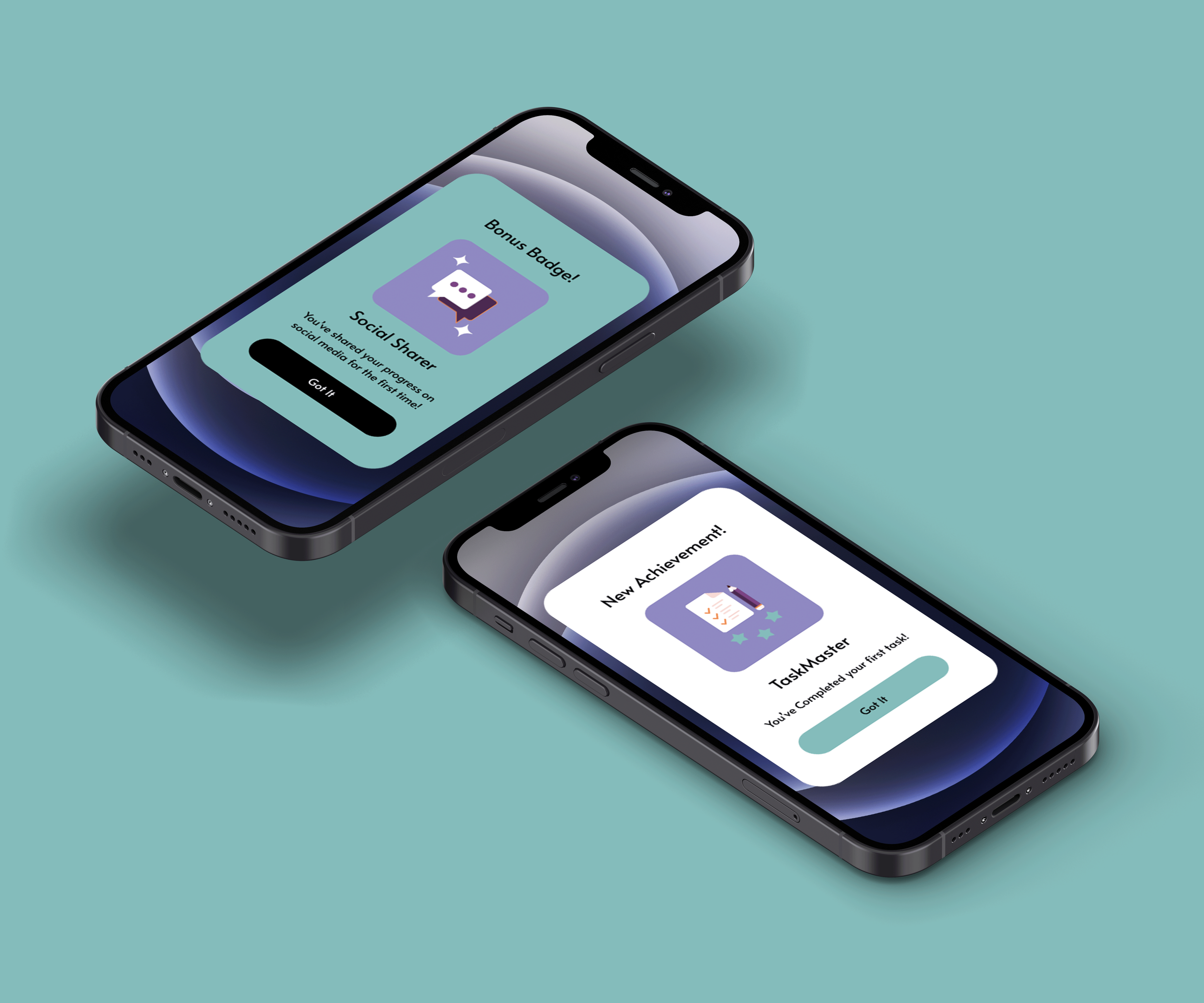 The Product: In App Achievement and Bonus BadgesOut of App NotificationsColor Palette and Icon DesignPopTask Mobile and Desktop Wireframing